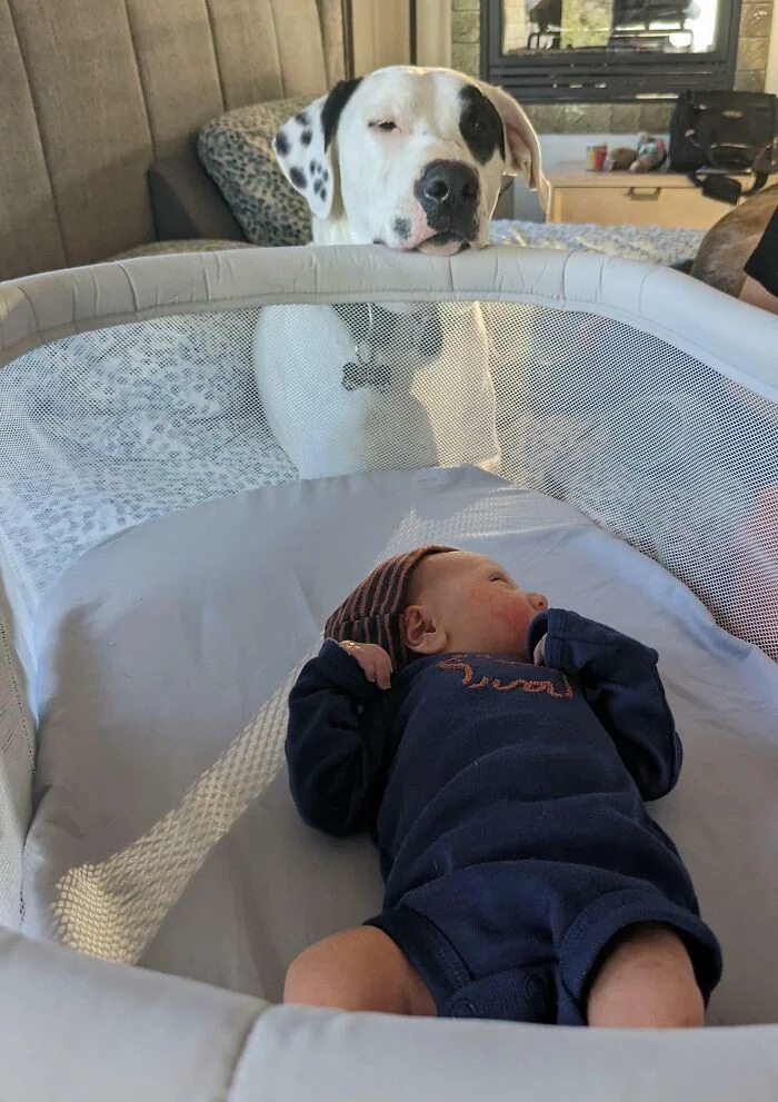 20. «Моему сыну сегодня три дня, вчера мы привезли его домой. Наш пес Зуко присматривает за ним и не спускает с него глаз с тех пор»