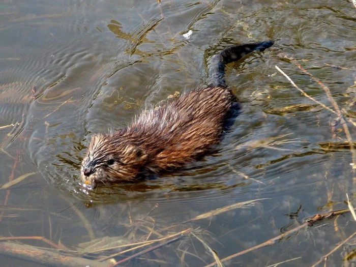 С такого ракурса ондатра — вылитый бобр. Отличить зверька можно по размерам и хвосту. Бобр куда крупнее, а хвост-весло у него пластом.