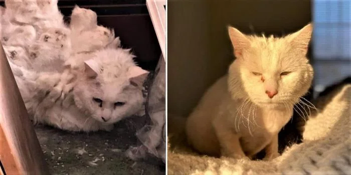 5. Когда мы увидели его, он был в жутком состоянии. Теперь он упитанный и красивый кот