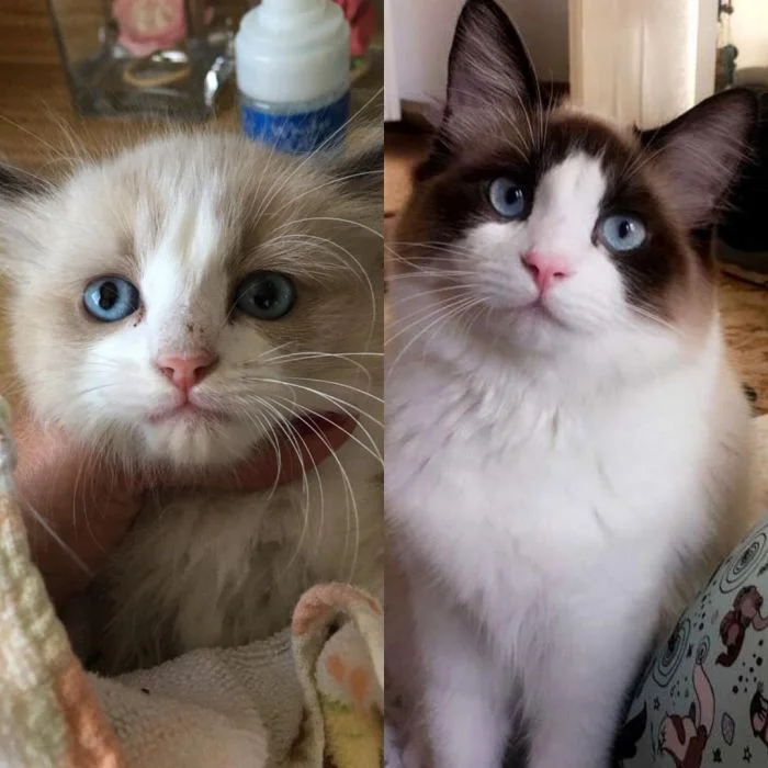 12. Я нашла этого котенка в коробке на улице. Наш милый пушистый малыш через несколько месяцев