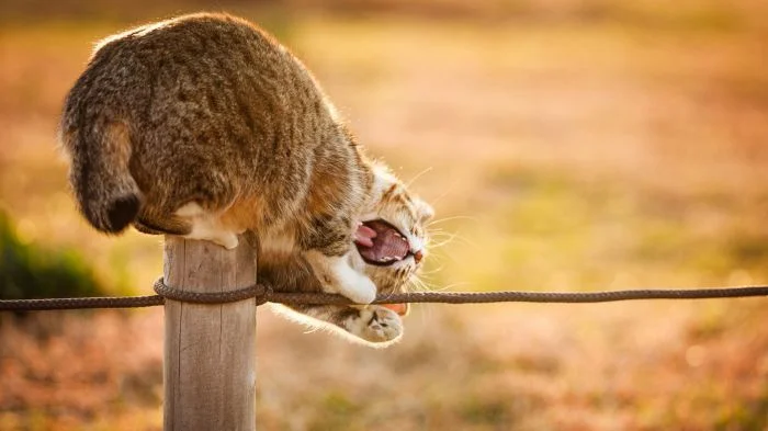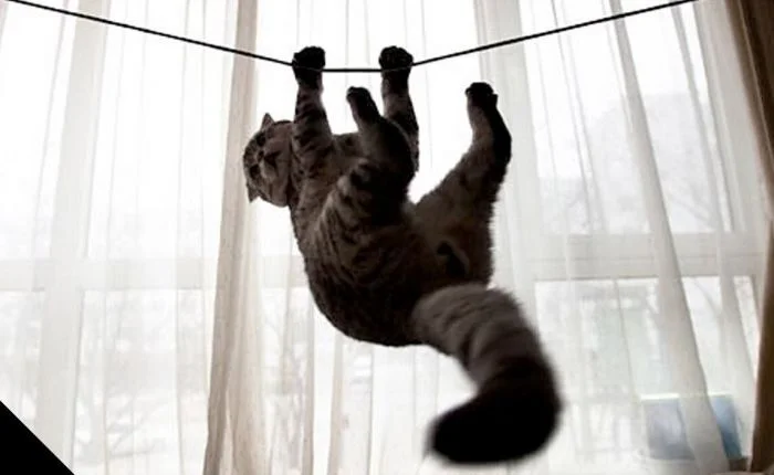 Эту разновидность, развивающую координацию и помогающую объединять мыслительную, эмоциональную и физическую активность тела, подразделяют на две дисциплины – боулдеринг и лазание по канату. С первым у котиков могут возникать проблемы, ибо лапки. А случае со вторым хвостатым спортсменам нет равных. Можно даже специально для этих целей канаты по всему дому развесить и наблюдать за передвижениями ловкого спортсмена, если на улицу с деревьями ходить не хочется. Котики – они такие спортивные. Главное, поймать и запечатлеть момент, когда им не лениво тренироваться.