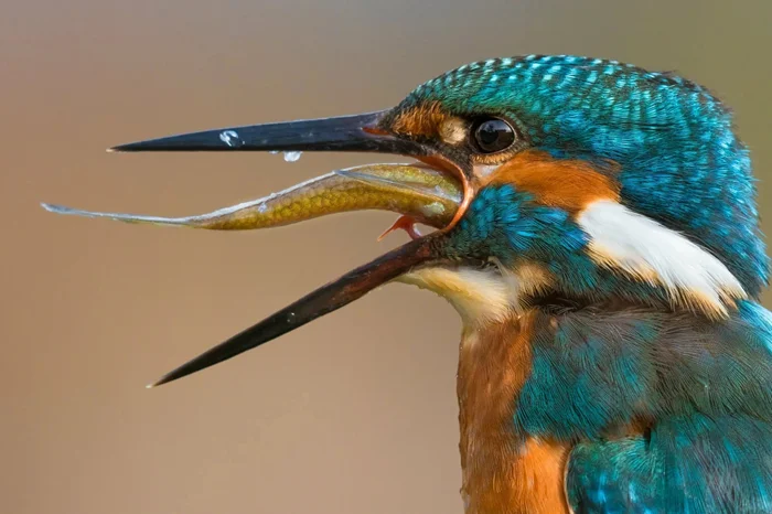 Чтобы защитить глаза во время заныра, у зимородка есть специальная перепонка, которая работает как очки для плавания.