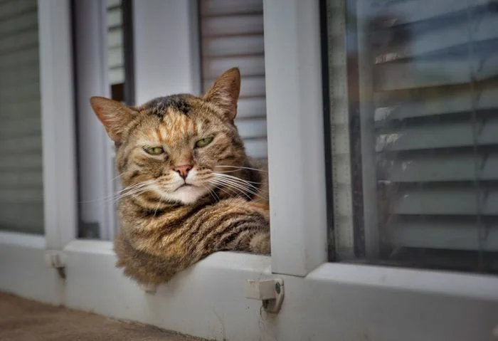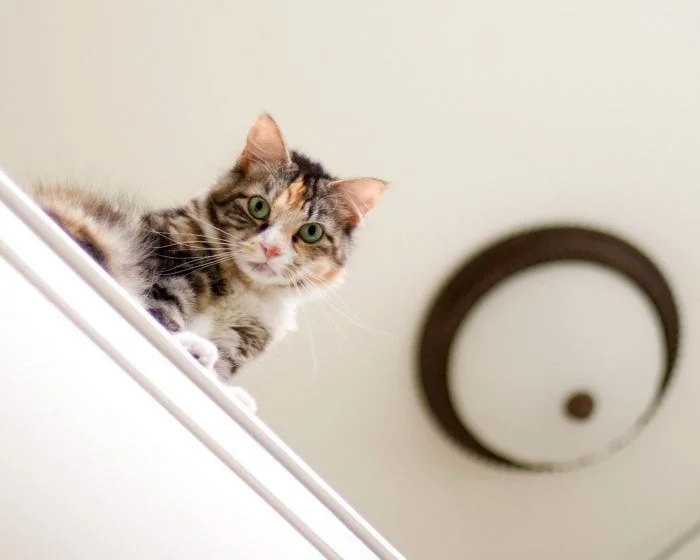 У котиков имеется удивительная способность смотреть так на нас, жалких людишек, даже когда технически они расположены значительно ниже нас. А уж если пушистым созданиям посчастливится метнуть презрительный взгляд с реальной высоты, то результатом становятся такие фоточки, на которых запечатлено всё превосходство высшей формы существования материи над всеми прочими.