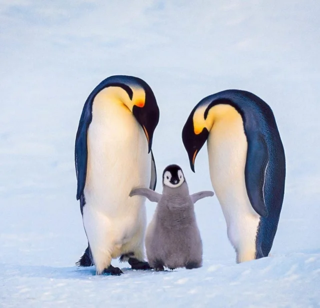 Эти самые яркие представители Антарктиды обладают скромным ростом — всего 115 см. Но это не мешает им быть теми ещё пухляшами (некоторые особи достигают 50 кг). Ну а как иначе выживать в климате, где температура порой падает до -60оС?