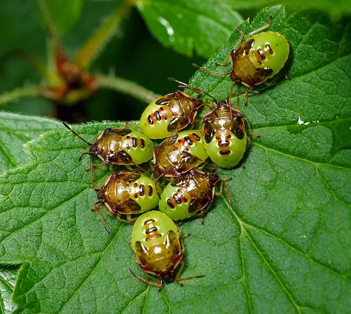 Клоп-щитник: Почему зелёный клоп на кустах малины выделяет такой неприятный запах?