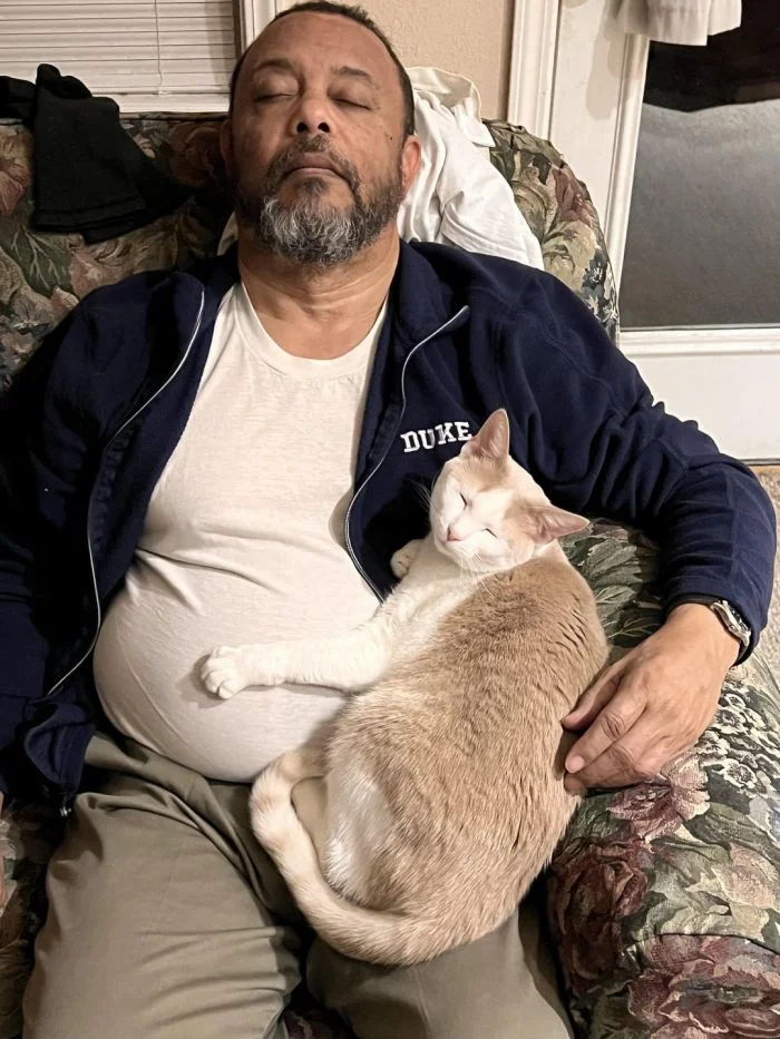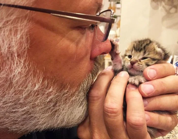3. Отец не очень любил кошек, но когда появилась Микки, у них случилась взаимная любовь