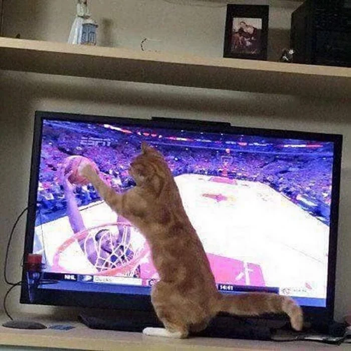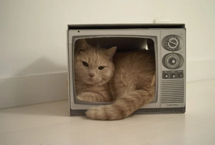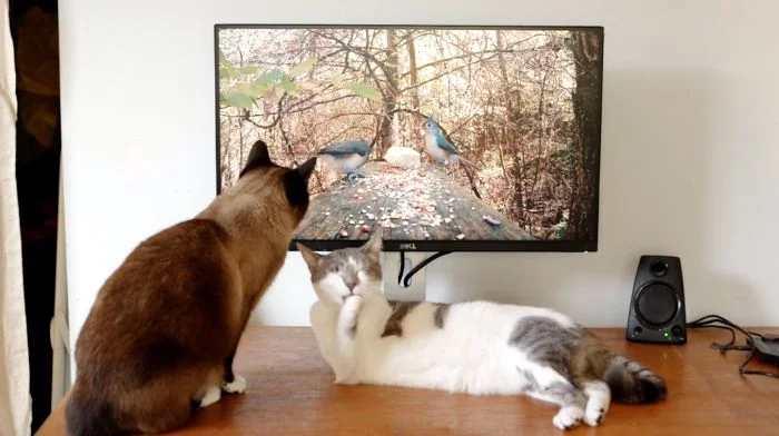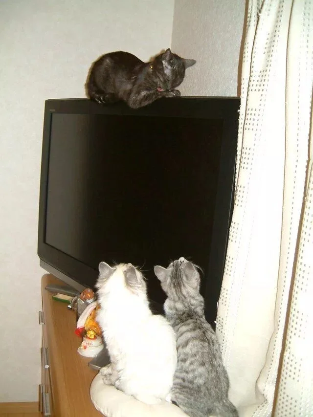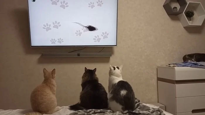 30 кошек, каждый из которых по-своему взаимодействует с телевизором и делает это с удовольствием