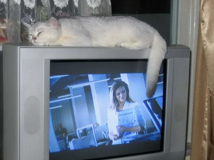 Под его мерный бубнёж унылые домашние дела делаются быстрее. А ещё – это настоящая находка для котиков. Пушистые по-разному используют достижение технического прогресса – смотрят телевизор, спят под его звуки, возлежат на нём. И даже порой роняют, увлёкшись тыгыдыками. Но это мелочи, ведь ящик всегда можно купить, а особенные котики – товар редкий, ценный, штучный, дефицитный.