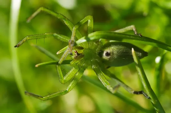 Микромата зеленоватая — единственный вид пауков-охотников в нашей стране. Он наделен такой скоростью, что даже не использует ловчую сеть, чтобы поймать добычу. На жертву паук накидывается молниеносно и сокрушительно, как тигр, притаившийся в зарослях джунглей. Что, забеспокоились, где можно столкнуться с такой напастью? Посмотрите в окно. Если стоит тёплое время года, и у вас возле дома есть хотя бы газон, можем вас поздравить: вполне вероятно, что вы этого охотника перед собой уже видите.