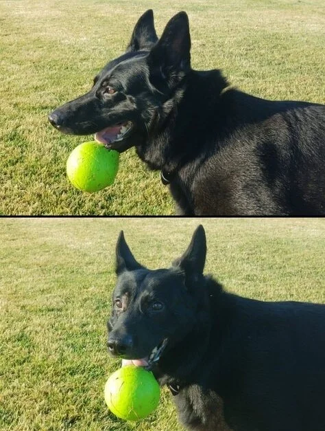 12. «Каждый раз, когда мы гуляем в парке, мой пёс засовывает челюсть в мяч, чтобы было удобнее его переносить»