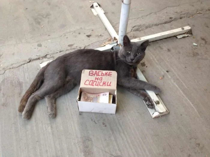 Но есть и ещё одна тактика. Тихой сапой, скромностью и убедительно дрожащими слезами в глазах, а порой ледяным спокойствием и безразличием к результатам действуют котики. Тактика правильная, ведь пушистые хитрюги практически всегда добиваются желаемого. А ещё талантами хвостатых артистов нередко пользуются креативные граждане. И результатом креатива становятся смешные фотки.