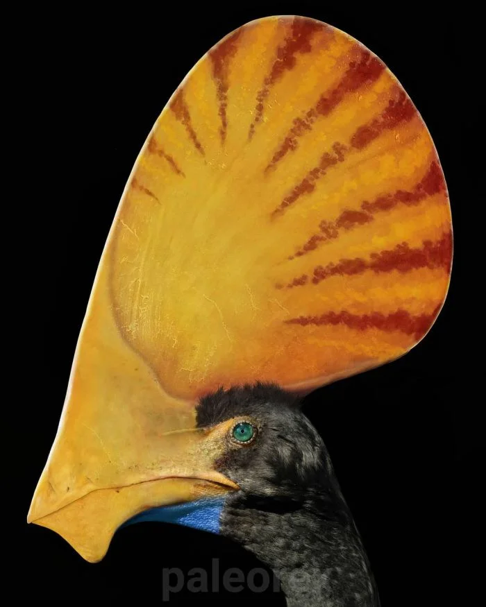 Несмотря на шпионское название птичка была настолько приметная, что… вы сами видите. Таких в разведку не пошлёшь. На самом деле палеонтологи спорят, зачем был нужен этот гребень: скорее всего, отнюдь не для неких аэродинамических свойств, как можно предположить, а банально для привлечения внимания сородичей.