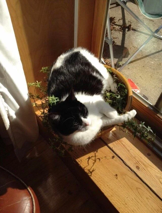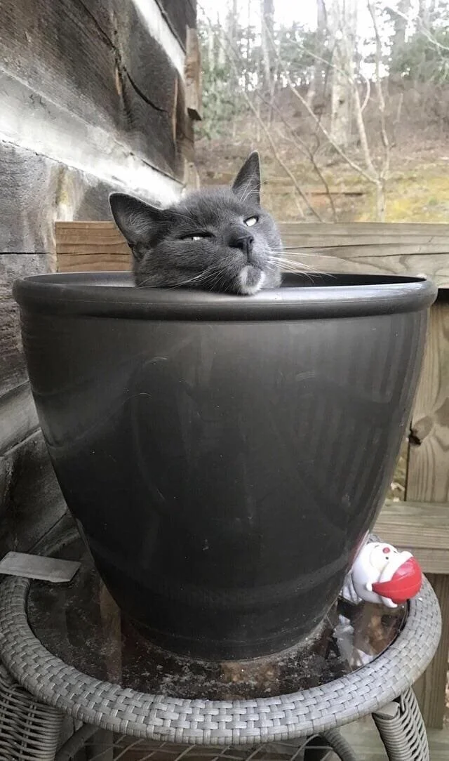 Удивительный факт о жизни №182 — коты очень любят сидеть в цветочных горшках. Особенно, если там уже сидит цветок. Поэтому не удивляйтесь, если в вашем саду или на подоконнике неожиданно расцветёт пара-тройка хвостатых пушистиков.
