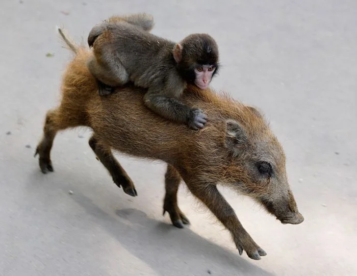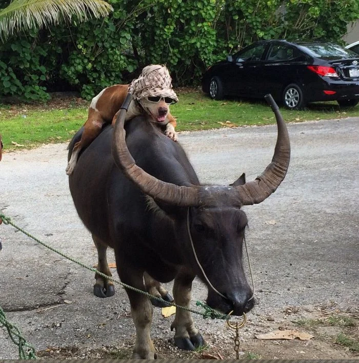Но кто сказал, что ездить могут только люди и только на лошадях или их близких родичах? Никаких запретов по этому поводу нет, поэтому братья наши меньшие с удовольствием выполняют функции седока и коня, развлекая себя и нас, людей, забавными фото.