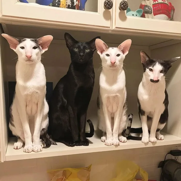 Ориентальная кошка — это когда в комнату сначала заходят лапы и уши, а потом уже остальная кошка. Они выглядят как инопланетяне и ведут себя, словно капризные избалованные дети. К этой породе не получится относиться равнодушно: даже заядлые собачники оценят их оригинальную внешность и сумасбродный характер. Заводить нельзя пройти мимо: сегодня разберёмся, где для этой породы поставить запятую!
