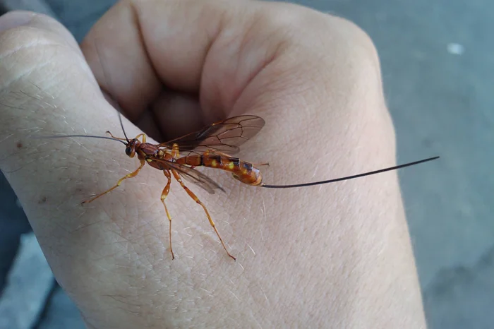 Нащупав цель, она вставляет в дыру яйцеклад, который в несколько раз длиннее самого насекомого! Так её дети находятся под двойной защитой! Во-первых, им не угрожают внешние хищники. Мало кто будет долбить ствол дерева специально. Во-вторых, её малыши обеспечены едой на весь период роста. С голода они точно не погибнут! В плюсе остаются и люди с деревьями: осы-наездницы эффективно прореживают популяцию вредителей. Только вот самим паразитам от этого не больно радостно, ведь личинка, став нянькой для чужих деток, погибнет.