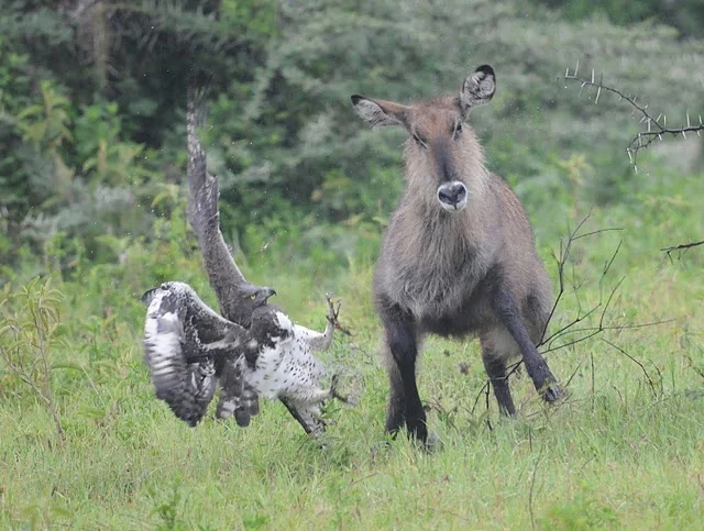 Но охота на сильных и юрких пташек — это цветочки. Кенийские боевые орлы, например, научились охотиться на копытных! Причём не только на малышей, но и на настоящих взрослых антилоп. В 1974 году орнитологи из Национального парка Цаво-Ист зафиксировали, что 2 семейные пары боевых орлов за год поймали и съели 86 дикдиков Кирка — небольших антилоп весом до 8 кило. Но это не предел: особо отбитые орлы умудряются в одиночку расправляться с кустарниковыми дукерами — антилопами весом до 37 килограмм.