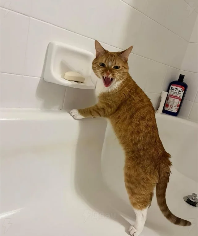 У этого рыжего балбеса есть странная привычка. Он постоянно пытается скушать мыло. Но вкус ему, естественно, дико не нравится. Хозяин уже не знает, как объяснить рыжему, что мыло - не еда. Даже предупреждающие картины в доме развесил!