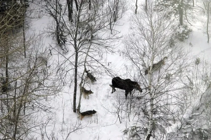 Но куда девается остальная часть туши? Волки разбирают её на запчасти и прячут в радиусе 150-200 метров. Хищники знают, что завалить лося — сложная задача, а кушать хочется всегда. Если рассчитать, то стая из 20 волков, завалившая хиленького сохатого в 200 кг, запасёт около 100 кг мяса!