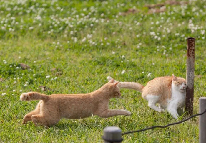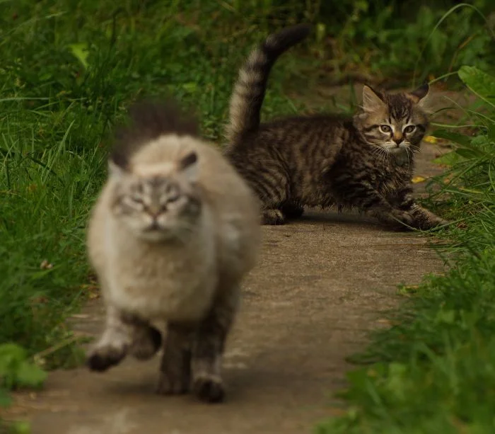 Но активность котейки тоже иногда проявляют. Да ещё какую: если уж пушистые спринтеры взялись поиграть друг с другом или погонять собак, то закончить игру им ничто и никто не помешает. Целеустремлённость – это про котиков.