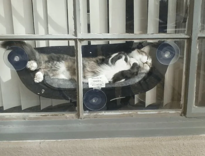 Мой друг оборудовал для своего кота настоящую зону релакса — уютный гамак.