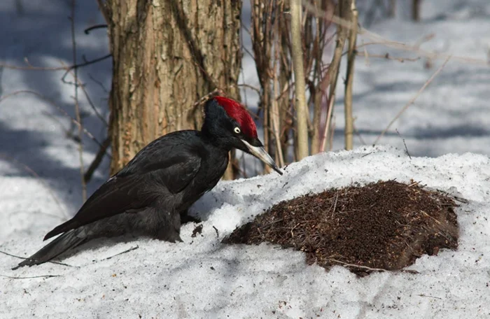 Мистер желна ранней весной решил перекусить сонными муравьями.