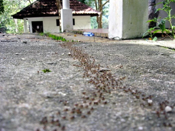 В нормальных условиях муравьи выстраивают четкую линию от еды до дома. Или двигаются военным маршем, как эти качующие южноамериканские муравьи.