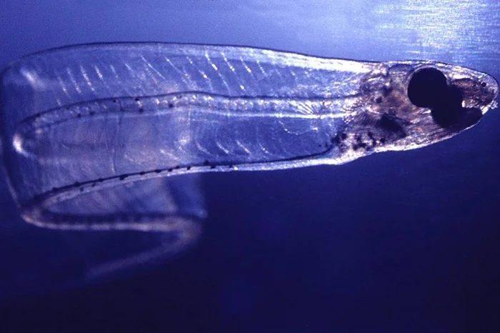 Но наладить это размножение это не получается. А всё из-за мудреного способа размножения. За время жизни угорь проходит 4 стадии взросления. Первая — личинка, или лептоцефал. Микроскопическая малявка, которую болтает на уровне планктона, похожа на жуткого рыбьего призрака. Прозрачное тело, зубы-иглы и немигающий взгляд, пронизывающий насквозь.
