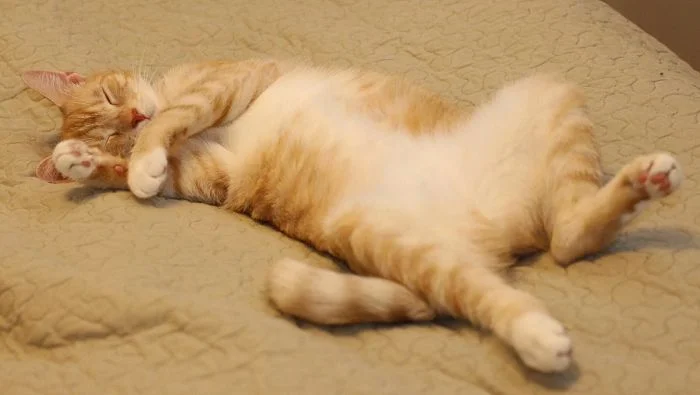 Животные предпочитают скрывать свои уязвимые места. Поэтому лежащий с открытым пузиком кот - это верный признак того, что он чувствует себя комфортно и расслабленно.