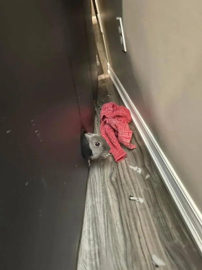 Печенька проверяет, есть ли еда в холодильнике (с ней всё в порядке)