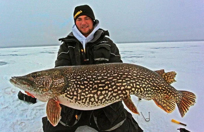 Если вы не поняли, что тут происходит: на фото щука поймала окуня и каким-то образом заморозилась в ледышку. Вот что бывает, когда забываешь влить в свою кровь незамерзайку!