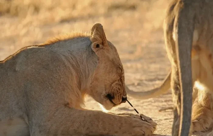 Этой львице очень повезло, если иглы не зашли глубоко.