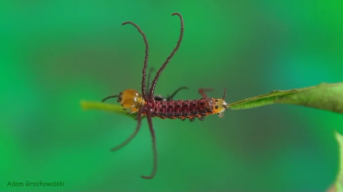 А вот их детишки выглядят жутковато, словно в гусеничку забрался какой-то мерзкий паразит, захватил тело и выпустил из него 6 узловатых щупалец! Но, конечно же, эти выросты — часть туловища личинки. Они делают её визуально больше и отгоняют часть мелких хищников. Обитает в Приморском и Хабаровском крае, а также на юго-востоке Амурской области.