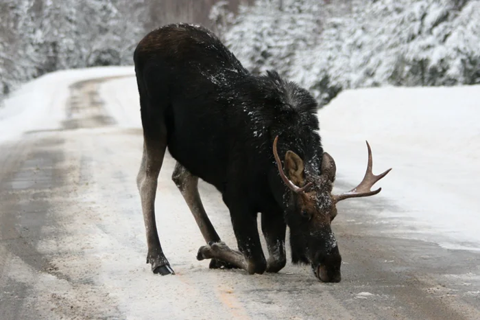 Некоторые животные специально выходят на дорогу, чтобы слизать соль, которой обрабатывают асфальт для устранения оледенения.