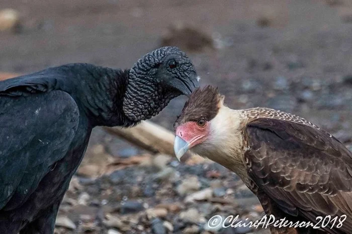 Фотографы запечатлели очень милую сцену: как черный гриф и каракара вычесывали друг друга. Птицы делали это на протяжении трех минут. Считается, что такой вид общения помогает наладить отношения между двумя видами, чтобы кооперироваться еще успешнее.