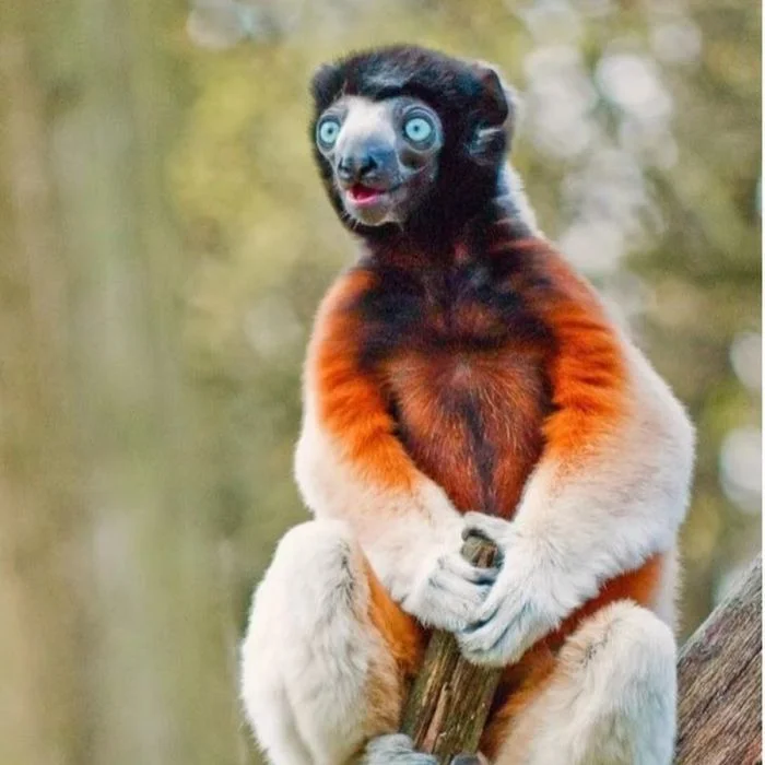 Золотоголовый сифака практически всегда выглядит удивлённым и заинтересованным.