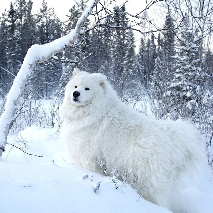 Эта пушистая прелесть одна из 14 пород, наиболее близких по генетике к волкам. Народы самодийской группы приручили диких зверей и приспособили их для охоты и пастьбы оленей. Несмотря на схожесть с хаски, как транспорт древние народы самоедов почти никогда не использовали.