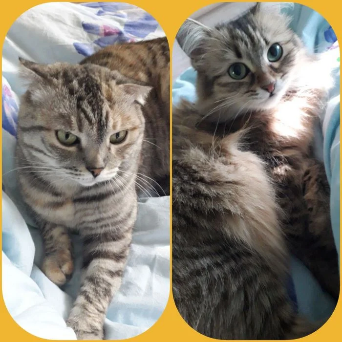 ИннаЗайцева -ЛапкиЦарапки: Крошечный, несчастный, обезвоженный 2-х - недельный найденыш Кузя летом 2017 года... И этот же Кузя с дружбаном Максом (тоже найдёныш и тоже крошечным котенком) в 2024 году.