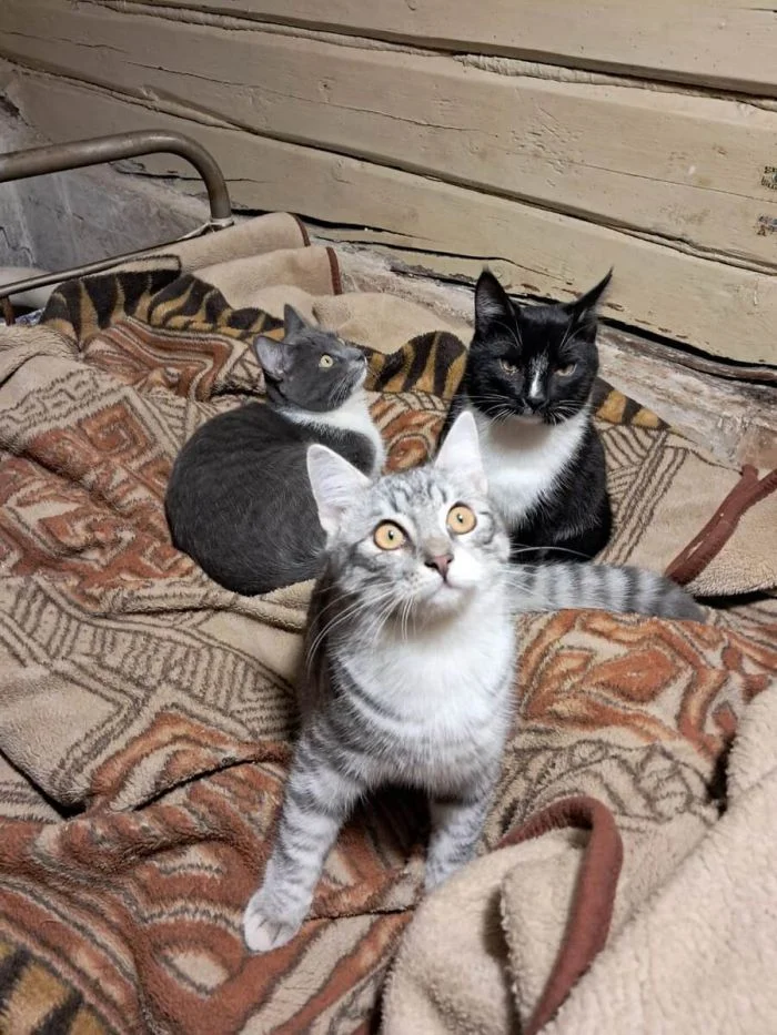 АКСИНЬЯ: У меня уже были кот и кошка, но я зимой спасла из подвала маленького котёнка, вылечили его и у меня теперь дружная троица.