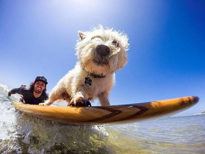 Может показаться удивительным, но такое направление как дог-сёрфинг реально существует. Оно представляет собой разновидность сёрфинговых маневров, в которых участвуют собаки, обученные кататься на досках для сёрфинга, бодибордах, скимбордах, досках для виндсёрфинга. Исторически зафиксировано, что первые собаки-сёрферы появились ещё в 1920-х годах.