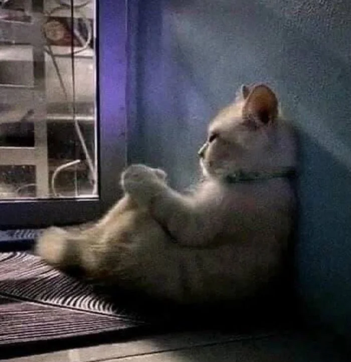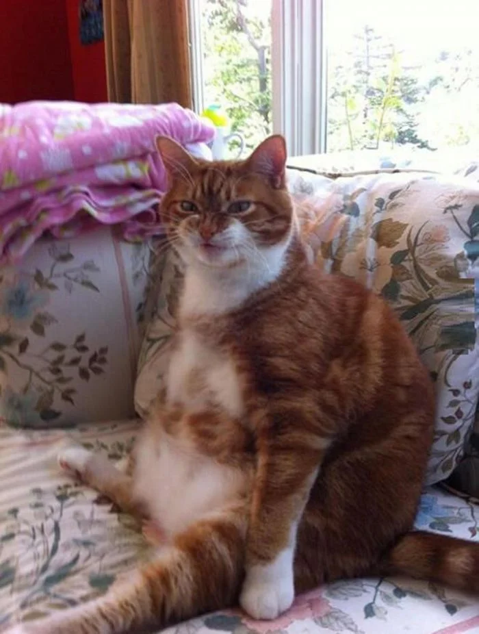 Но котейки умеют не только лежать, но и сидеть. Сидячая поза у них выходит весьма забавно и вызывает смех, поскольку так пушистики иногда очень уже похожи на людей, но с поправкой на особенности котикового строения.