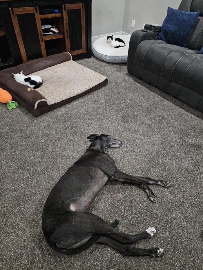 7. У них четыре башни, три гамака для кошек и неограниченный доступ к диванам, но собачья лежанка - лучшая