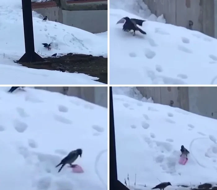 Эти птицы не раз были замечены за забавными действиями. Например, скользили по заснеженным крышам или выполняли воздушные трюки, просто для удовольствия.