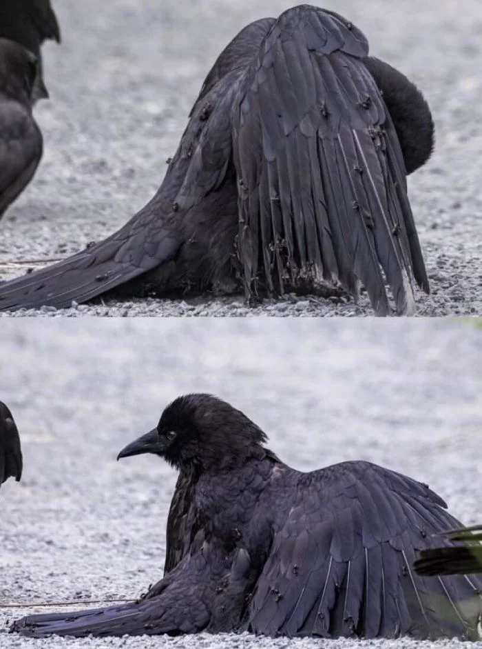 29. Когда ворон умирает, его сородичи прилетают осмотреть его. Вероятно, они пытаются узнать, как он умер, и избежать подобной участи
