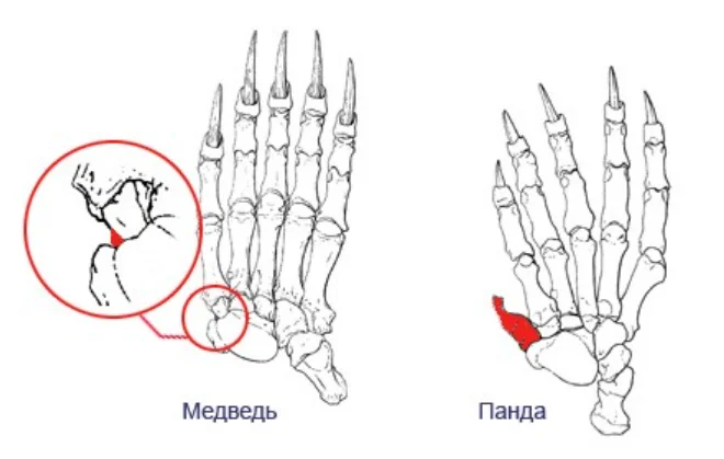 Сравнение лапки панды и бурого медведя.