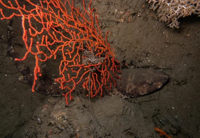 Замаскированная тушка покоит пузо на дне весь день. Но ночью оборонительная хитрость превращается в наступательную. Акула, как пылесос, всасывает не только воду, но и добычу: мелкую рыбку, криль и ракообразных.