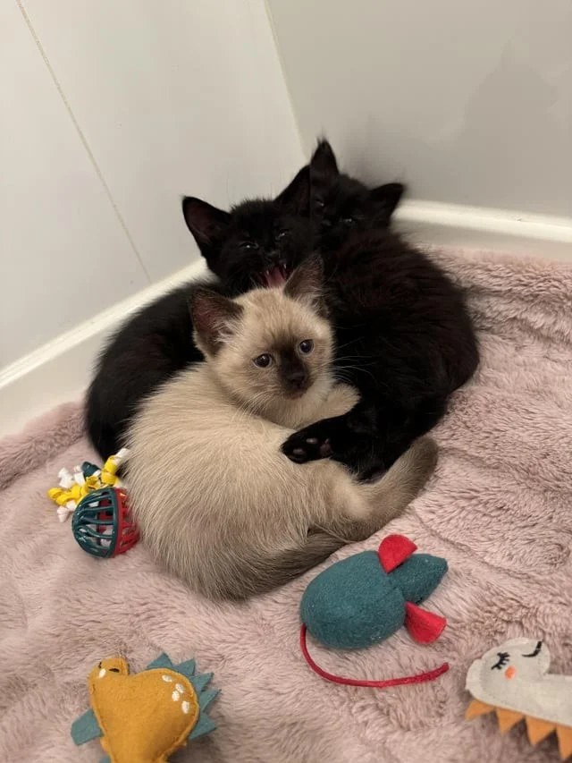 В результате семья решила оставить двух котят – сиамскую кошку и черного короткошерстного кота, назвав их Коко и Тоби. А третьего, длинношерстного черного котенка, они подарили другу.