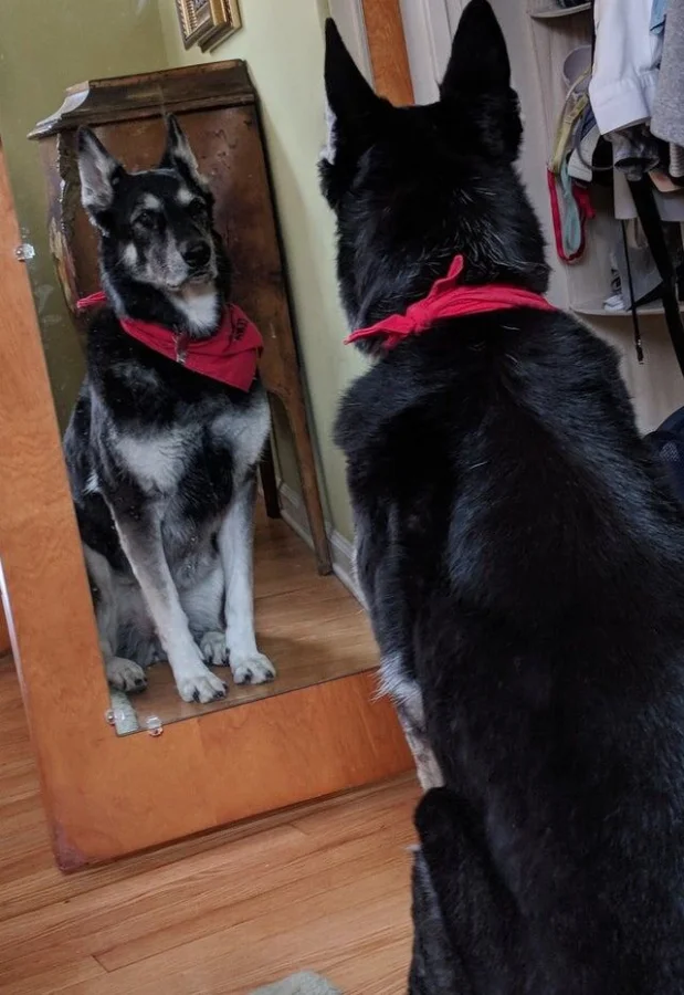 6. «Когда проснулся, застал собаку за тем, что она сидела, уставившись на себя в зеркале»