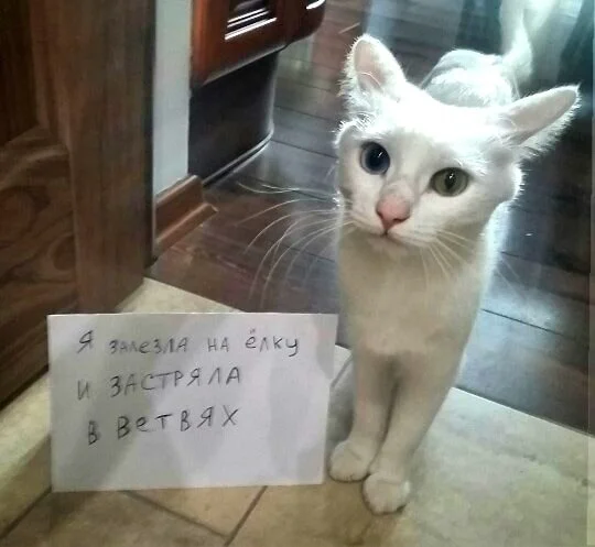 У котов с ёлками действительно сложные отношения. Пухнастые питомцы явно убеждены, что в доме должно быть только одно главное украшение, и это — кот. Поэтому они объявляют зелёным пришельцам беспощадную войну!