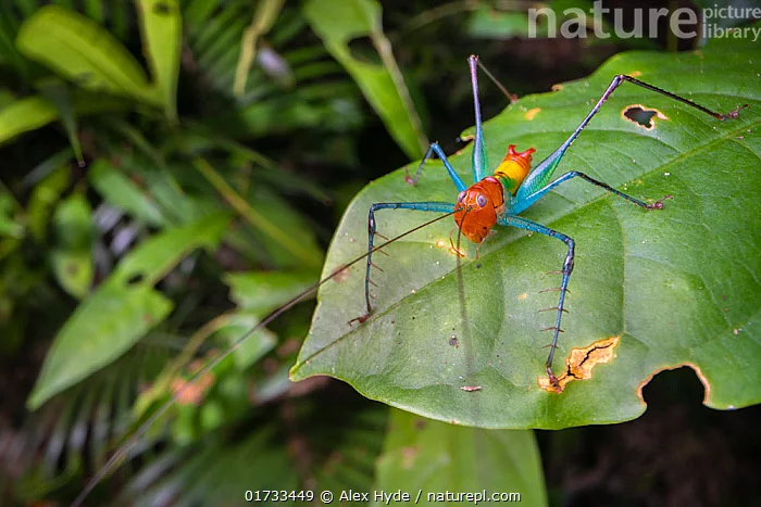 Он не будет трусливо скрываться в траве — его наряд абсолютно не предназначен для маскировки. Хитиновая броня сверкает всеми цветами радуги. Прямой взгляд холоден и безразличен. А его огромные лапы, усыпанные шипами и иглами, превращают привычного кузнечика в настоящую машину по уничтожению мелкой живности Южной Америки.